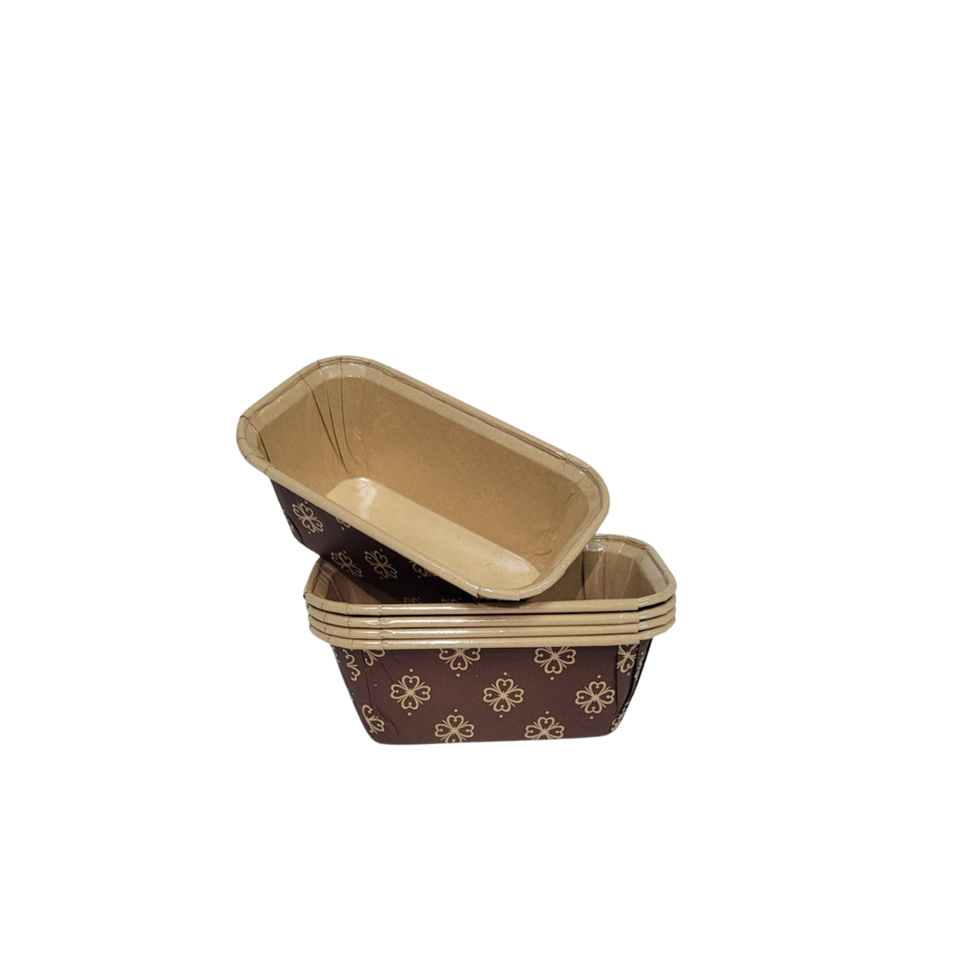 15pc – 3.5”(L)x1.5”(W) x1.5”(H) Mini Loaf Printed Pattern Baking Cups (Brown)